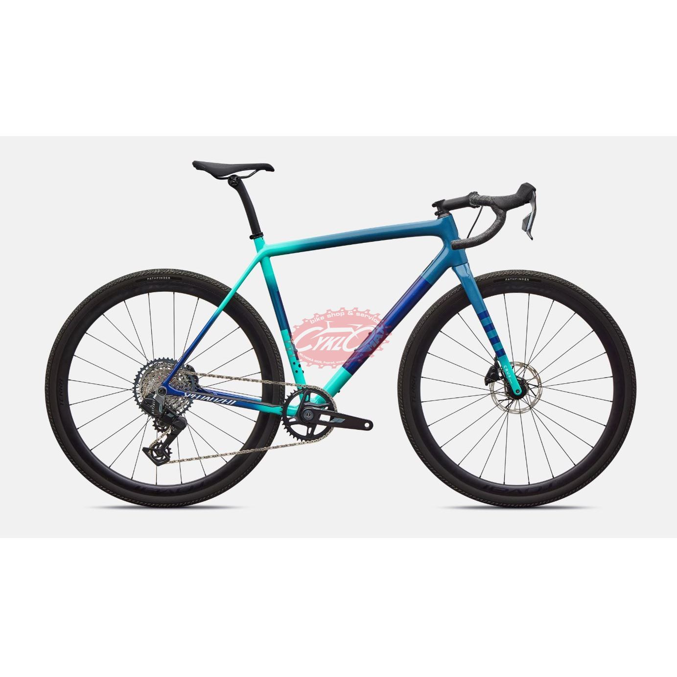 - Roval Terra C, 25mm inner width carbon rim, 32mm depth, DT 370 hub, 24h, DT Swiss Comp Race spokes
