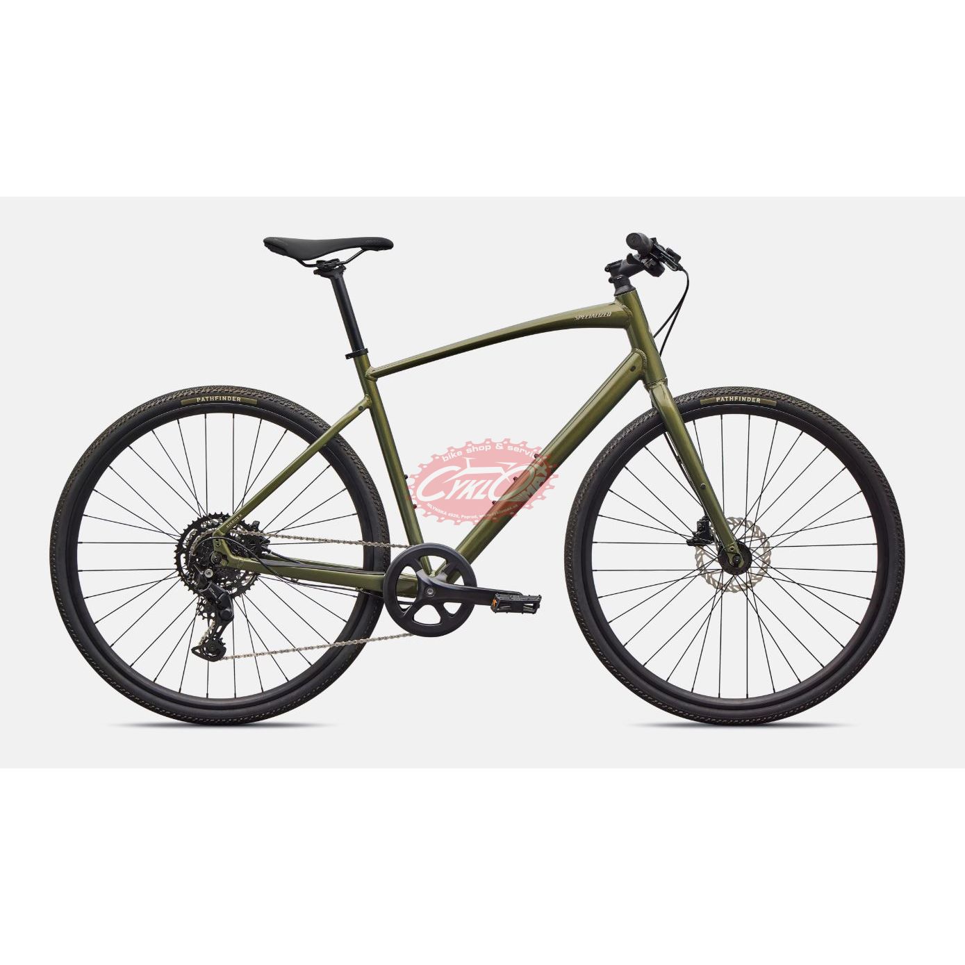 Specialized A1 Premium Aluminum, Fitness Geometry, butted tubing, internal cable routing, flat-mount disc, quick-release, Plug + Play rack/fender mounts