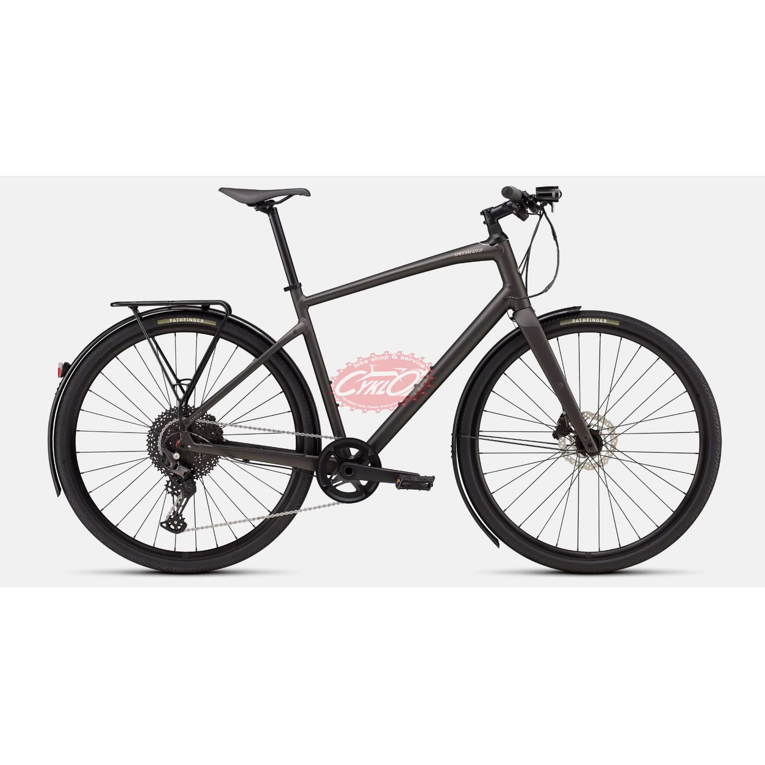 - Specialized A1SL Premium Aluminum, Fitness Geometry, butted tubing, internal cable routing, flat-mount disc, quick-release, Plug + Play rack/fender mounts